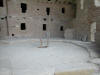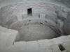 The large pit on the ground was a fireplace. Fresh air was drawn in through the ventilator shaft, hit the deflector wall between the ventilator outlet and the firepit and circulated evenly through the kiva. Beyond the firepit is a small hole, called a sipapu : it represents the opening through which man emerged onto the face of the earth. As for the niches (small openings in the walls of the kivas), they held special ceremonial objects such as turquoise, shell beads and prayer sticks. The pilasters supported the beams of the roof.