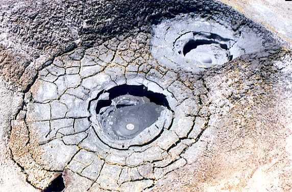 Bubbling mud : natural hot tubs in the spring, when rain and melting snow provide abundant water, hot pods shrink to mudpots, spattering clay formed from decomposed lavas.