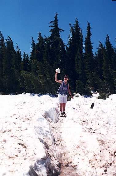Bumpass Hell : residual mass of cooling andesite lava perhaps 3 miles deep and boiling lakes. Andesite lavas decompose readily but sulfuric acid and hot steam have greatly speeded up the process to carve out this barren 16-acre bowl. The "rotten egg" smell is hydrogen sulfide fumes, rising from deep within this mass.