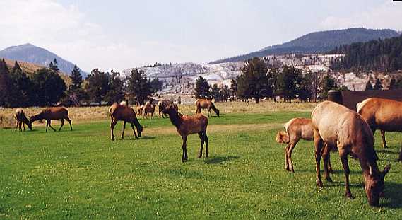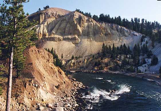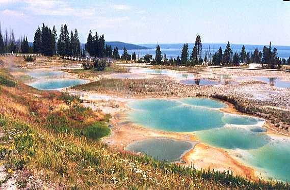 by what grows in it. Brightly colored algae and bacteria thrive in the hot