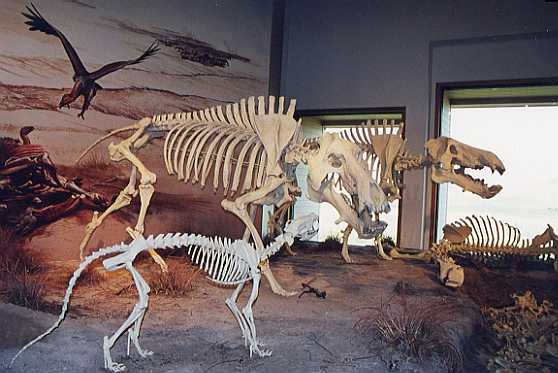 Beardog (Daphoenodon - in the foreground) were wolf-sized,