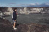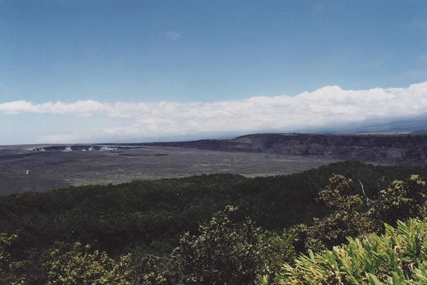 Kilauea Caldera is a still-steamin crater (look for steam plume in the background, caused by molten lava boiling just beneath the surface).