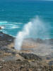 The waves, the tides and the overall force of the sea rushing into the lava tube decide how much the water surges through the spout, the low whooshing preceding the rushing water sounding like a whale breathing !