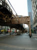 Aerial CTA train in downtown Chicago.