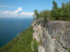 The Sleeping Giant rests, cradled by the waves of Lake Superior. In scientific terms, the Giant is a series of mesas composed of sedimentary rock and capped with erosion-resistant diabase.